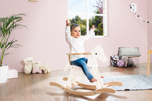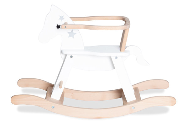 Dieses Schaukelpferd aus Pinolino ist aus Holz gefertigt und wunderschön verarbeitet. Der Sitz hat eine Höhe von 34 cm. Die Sicherheitsstange ist abnehmbar, danach bleibt ein Aufsatz übrig. Durch Entfernen der Halterung kann sie noch länger verwendet werden, wenn Ihr Kind wächst. Ausgestattet mit Griffen und Fußstützen. Das Pferd ist für Kinder ab 1 Jahr geeignet.